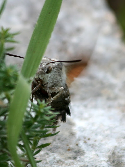 Macroglossum stellatarum, a borboleta colibri, borboleta nocturna que se alimenta durante o dia sem nunca pousar, alimenta-se das plantas sempre batendo as asas a uma velocidade incrivel.