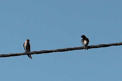Estou deveras muito satisfeito, o meu monte tem um futuro risonho no que diz respeito à écologia visto que as andorinhas elegeram este sitio para se instalarem. Primeiro vieram as Andorinhas-das-chaminés, Hirundo rustica, depois vieram Andorinhas-dauricas, Hirundo daurica e agora chegaram as Andorinhas-dos-beirais, Delichon urbicum.